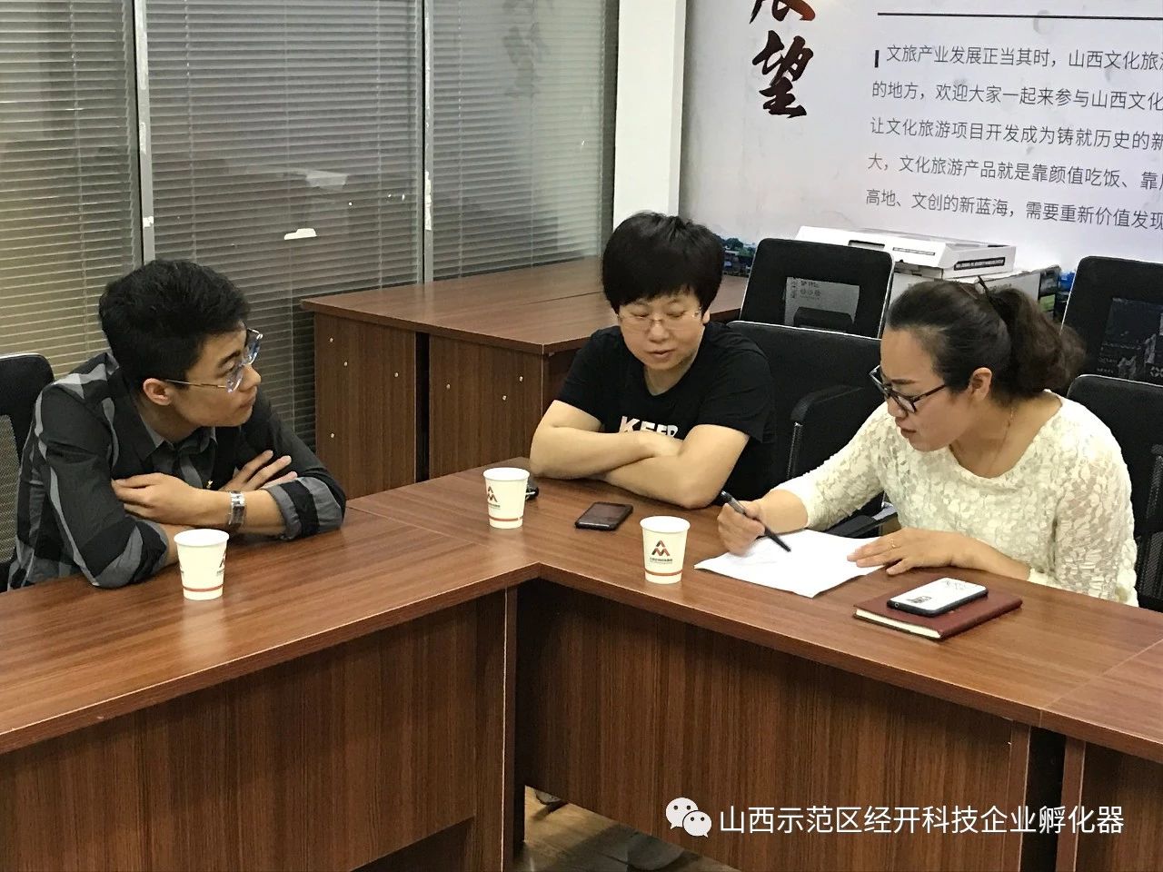 5月8日上午,中共太原經(jīng)開(kāi)眾創(chuàng )孵化器管理有限公司黨支部上級領(lǐng)導部門(mén)——中共山西轉型綜合改革示范區唐槐產(chǎn)業(yè)園區委員會(huì )黨群部負責人韓元麗及干事宋娟蒞臨我孵化器指導視察黨建工作。
